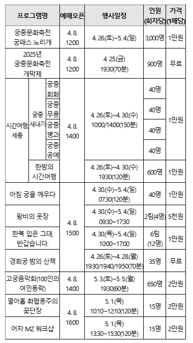 궁문화축전 프로그램도 다양하게 구성되어 있으니
