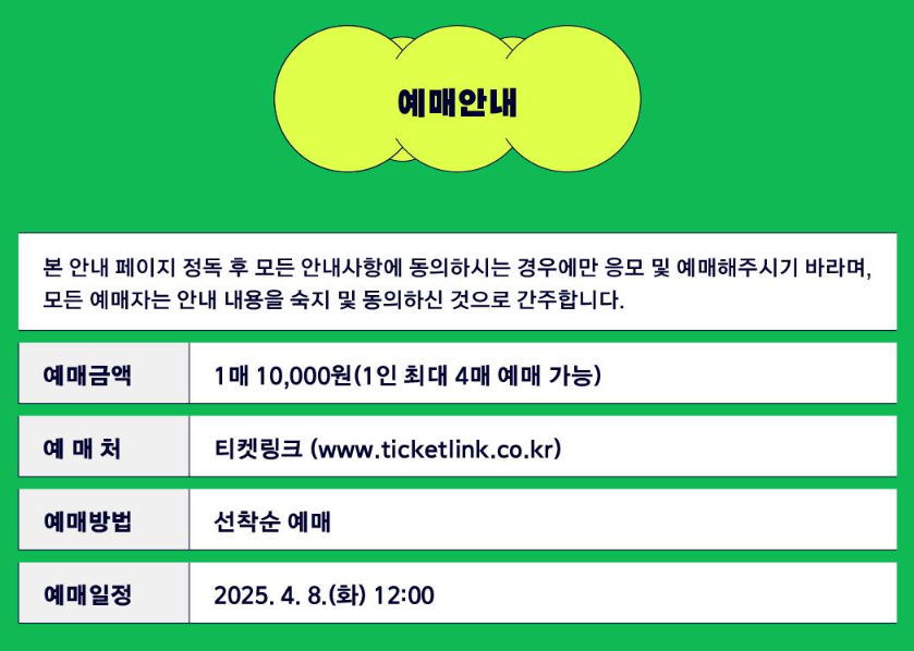 - 예매일정: 4월 8일(화) 낮 12시부터 선착순!